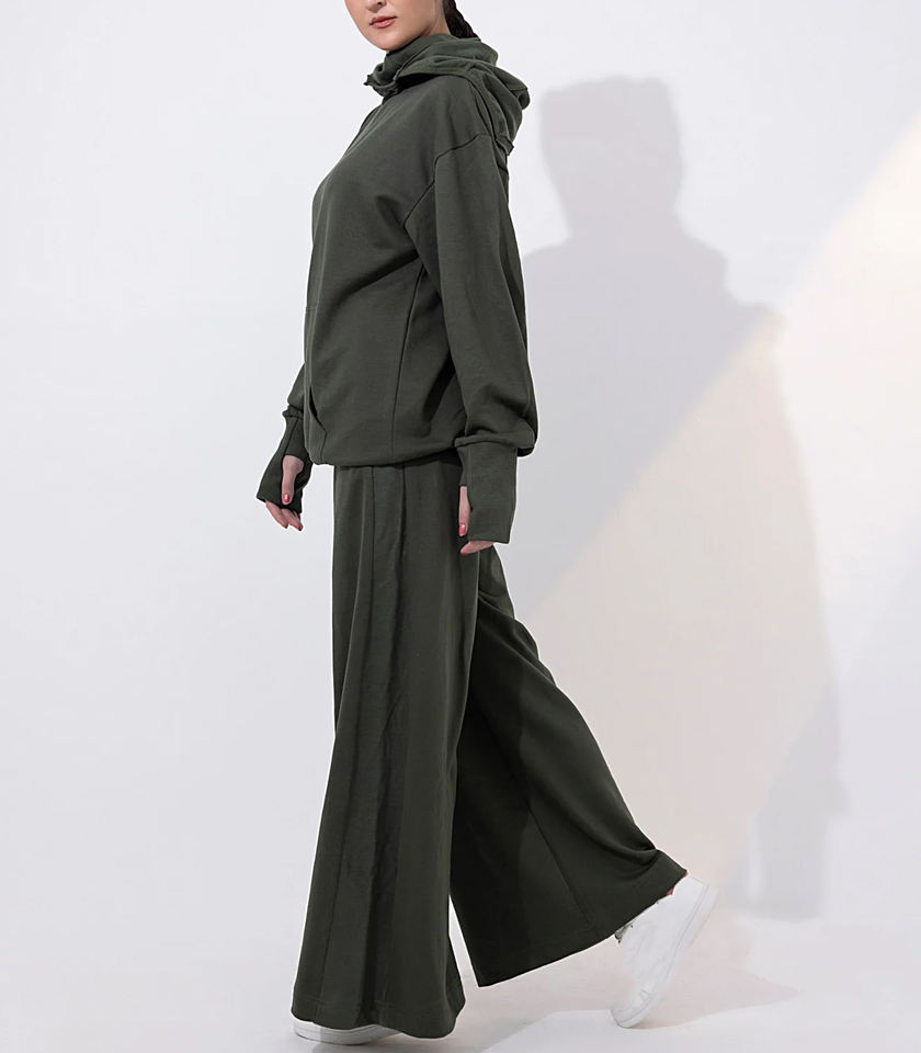 Oversized Tracksuit Set Women Regular Fit Short Solid Winter Comfortable Daily Wear Sweatpants