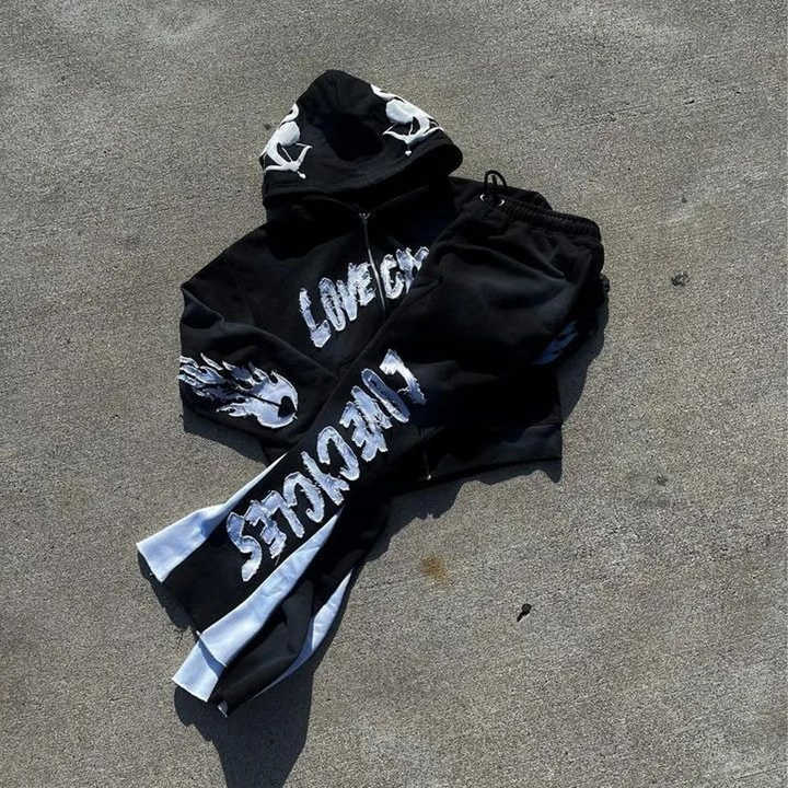 Oversized Tracksuits for men Cotton Winter for Men Printed Distressed embroidery Hoodie Sweat Suit Sets Acid Washed Tracksuits