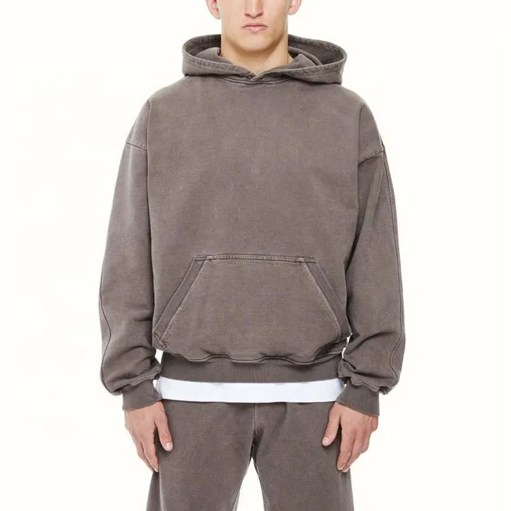 ชุดวอร์มวินเทจโอเวอร์ไซส์สำหรับผู้ชายชุดวอร์มผ้าฟลีซแบบสวมหัวสีเรียบเทคโนโลยีเสื้อสวมหัว