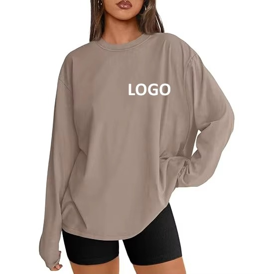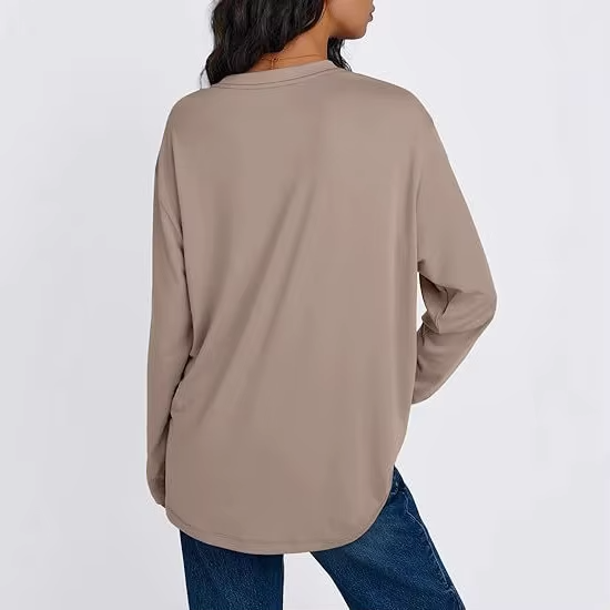 เสื้อผู้หญิงคอกลม ผ้าคอตตอนผสมไหมนม ทรงหลวม ไหล่ตก แขนยาว แบบเรียบ ไม่มีลาย น้ำหนัก 200 กรัม แห้งเร็ว ระบายอากาศดี ไม่เป็นขุย ไม่ยับ