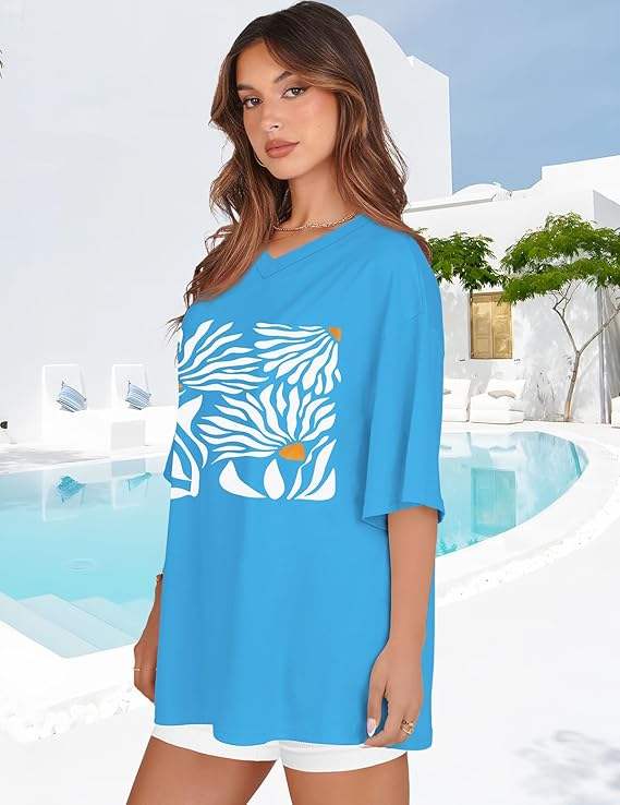 เสื้อยืดกราฟิกของผู้หญิงโอเวอร์ไซส์ | เสื้อฤดูร้อนทรงหลวม | เสื้อยืดแขนสั้นคอกลม | ดีไซน์ใส่สบาย & มีสไตล์