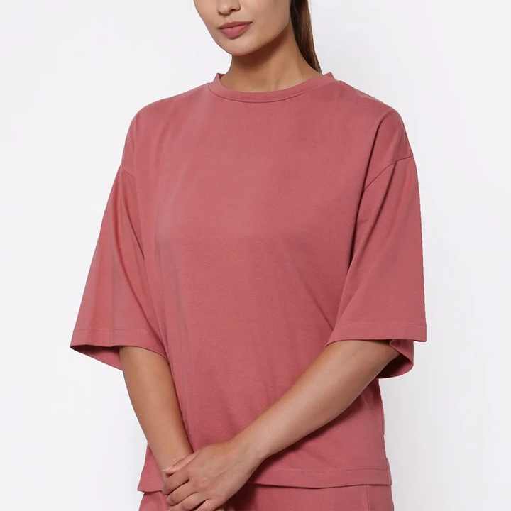 เสื้อยืดโอเวอร์ไซส์ผู้หญิงจากปากีสถาน สวมใส่สบายและมีสไตล์ เท่ๆ แบบลำลอง ไซส์พลัส ลายเรียบ พร้อมโลโก้พิมพ์นูน