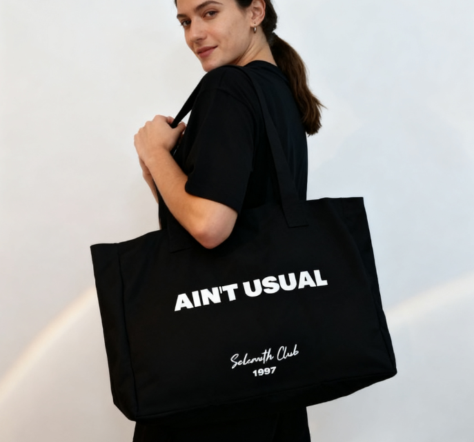 Oversized gym canvas wide handle silk gold color logo package bag custom colored Weekend party Canvas Shopping Tote Bag