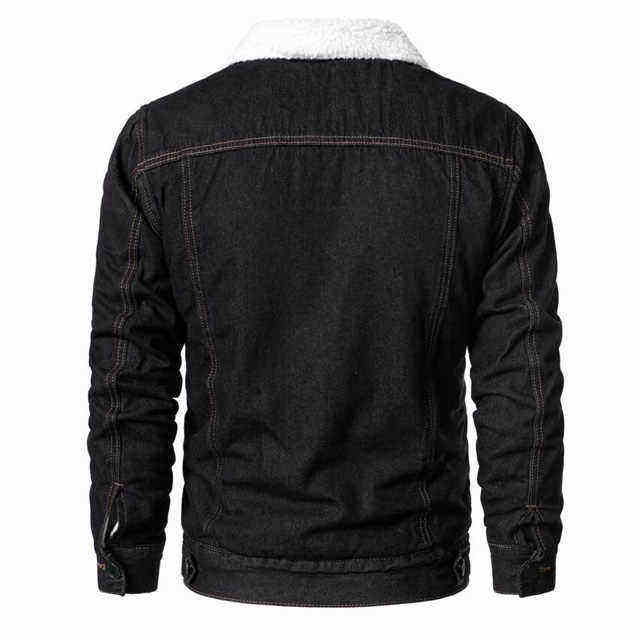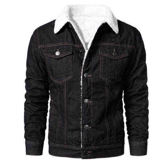 แจ็กเก็ตผ้ายีนส์สำหรับผู้ชายโอเวอร์ไซซ์เสื้อโค้ทยีนส์สีน้ำเงินมีซับในแบบหนาเสื้อโค้ทลำลองให้ความอบอุ่นสไตล์สตรีท