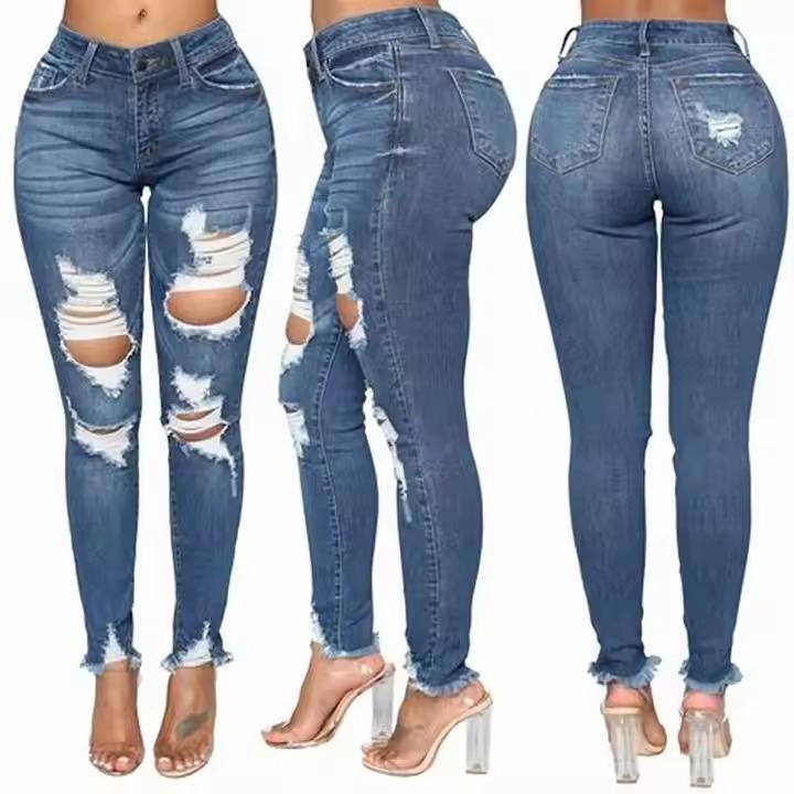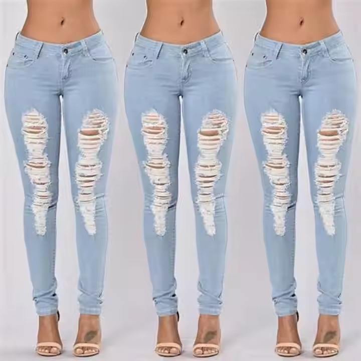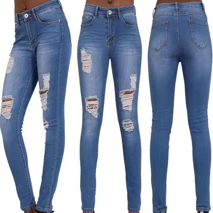 กางเกงยีนส์ผ้ายืดทรงสกินนี่สำหรับผู้หญิง สต็อกล้นจากบังกลาเทศ กางเกงยีนส์ทรงตรงสำหรับผู้หญิง