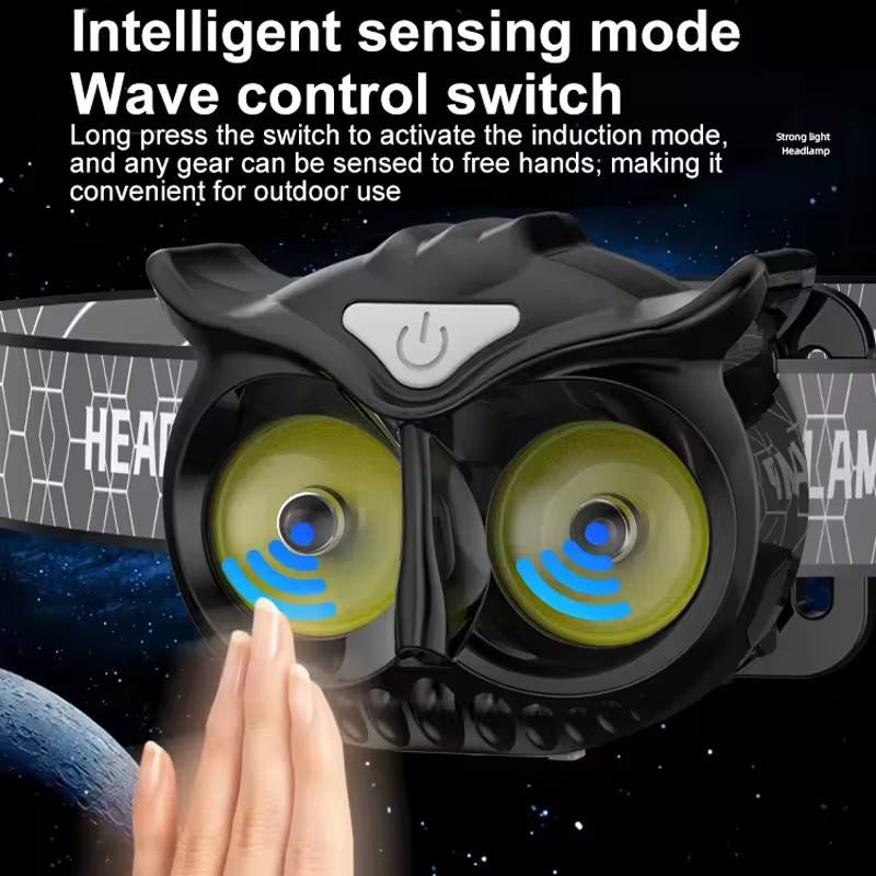 ไฟฉายคาดศีรษะ Owl Cob แบบชาร์จไฟได้ พอร์ต Type-C พกพาสะดวก หมุนได้ ไฟล่าสัตว์ ไฟฉายคาดหัวแบบแม่เหล็ก USB ไฟ LED สำหรับตกปลา