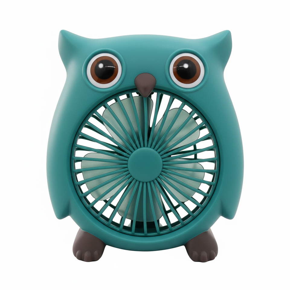 พัดลมตั้งโต๊ะ Owl ขนาด 10-12.9 นิ้ว มอเตอร์ AC แบบส่ายได้ ควบคุมด้วยระบบกลไก กำลังไฟ 40 วัตต์ วัสดุพลาสติก พัดลมระบายความร้อนในครัวเรือน พร้อมตัวตั้งเวลา ปรับความเร็วได้สามระดับ
