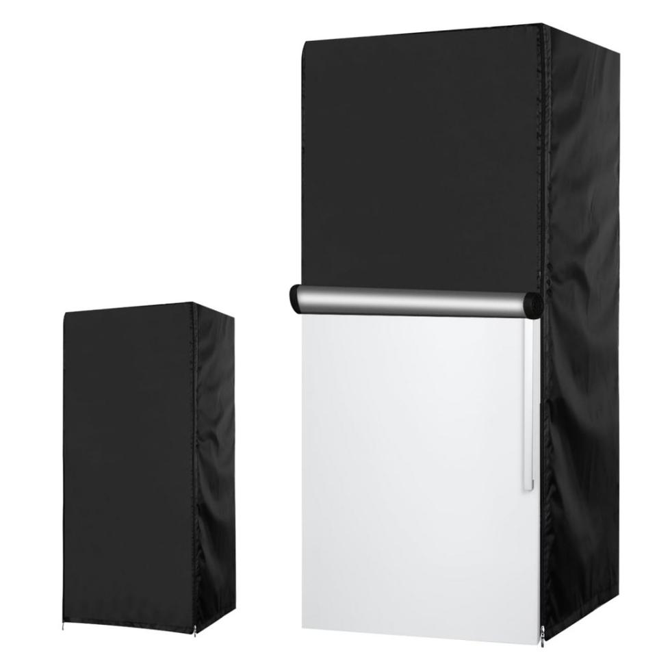 ผ้าคลุมตู้เย็นแบบตั้งตรงผ้าอ็อกซ์ฟอร์ดสีดำ 56x58x86 ซม. ปิดด้วยซิป ป้องกันฝุ่น กันน้ำ ป้องกันภายนอกอาคาร