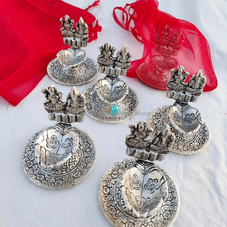 ตะเกียงน้ำมันรูปมือแกะสลักโลหะออกซิไดซ์ ลายพระลักษมีและพระพิฆเนศ ของขวัญเทศกาล ของขวัญต้อนรับบ้านใหม่ ของขวัญวันปีใหม่ ของขวัญวันคริสต์มาส