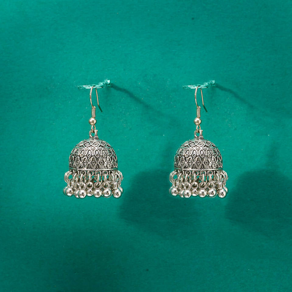 ต่างหู Jhumki ชุบสารออกซิไดซ์เครื่องประดับแฟชั่นสำหรับผู้หญิงและเด็กผู้หญิง
