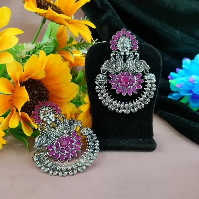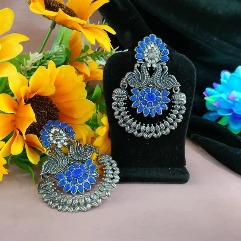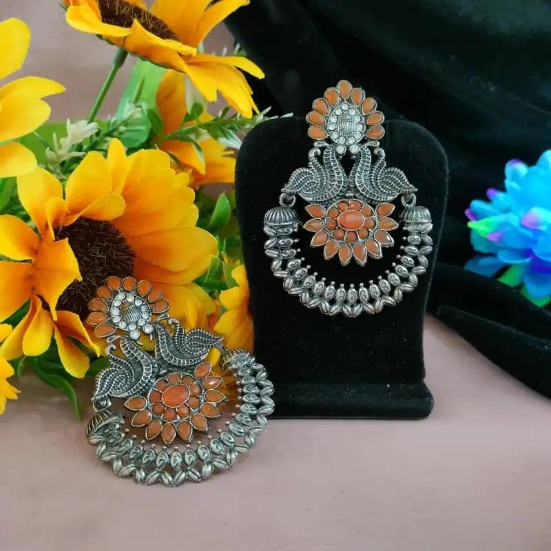 Oxidised Trendy Miniature Work of Unique Art True Standout Accessory Fashionable Indian Women Earrings Bold and Colourful Design