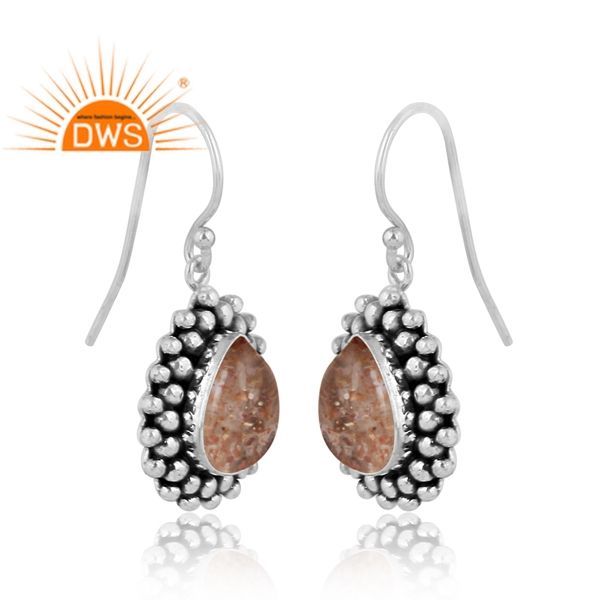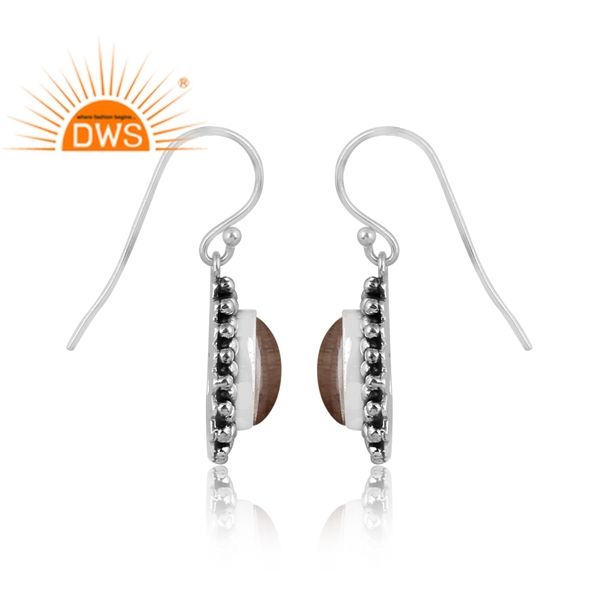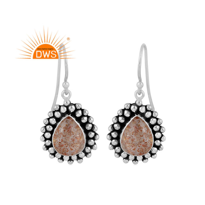 925ออกซิไดซ์สเตอร์ลิงเงินธรรมชาติคู่ซันสโตนอัญมณีควอทซ์อัญมณีห้อยต่างหูผู้ผลิต