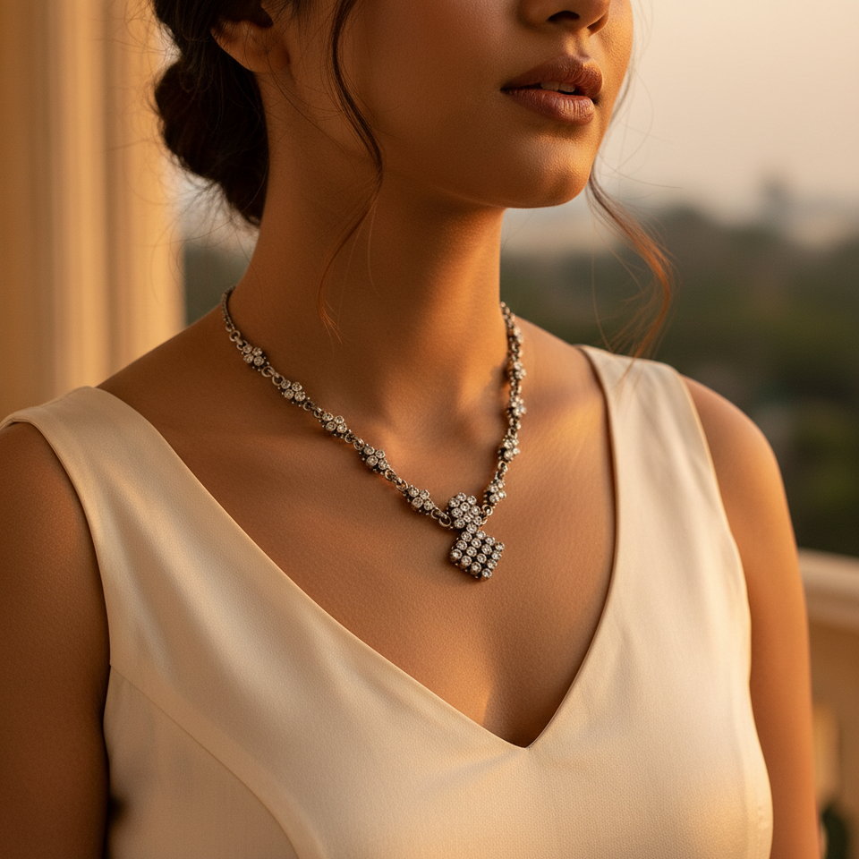 สร้อยคอคริสตัลเงินออกซิไดซ์สำหรับผู้หญิง ของขวัญเครื่องประดับสุดหรูสำหรับโอกาสพิเศษ