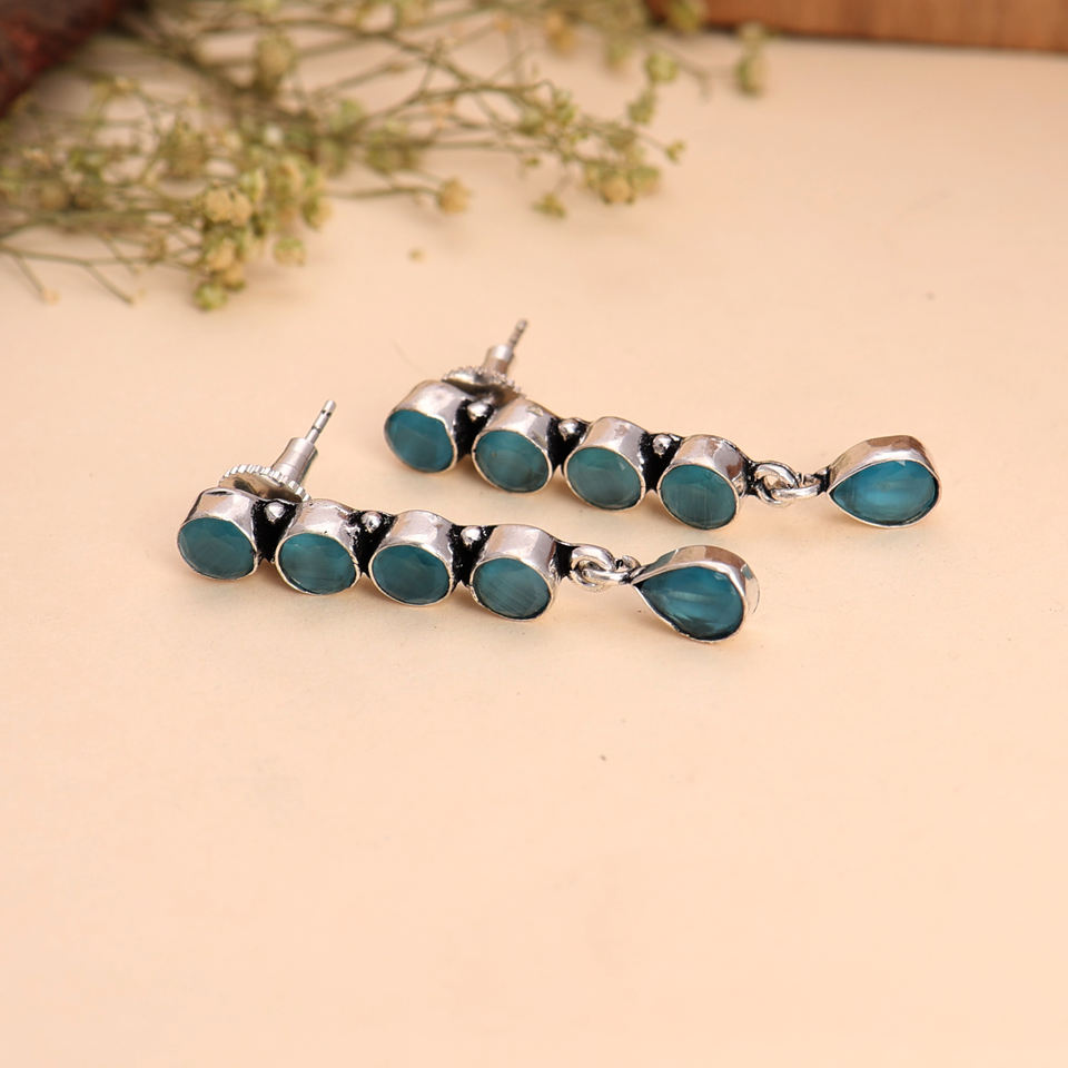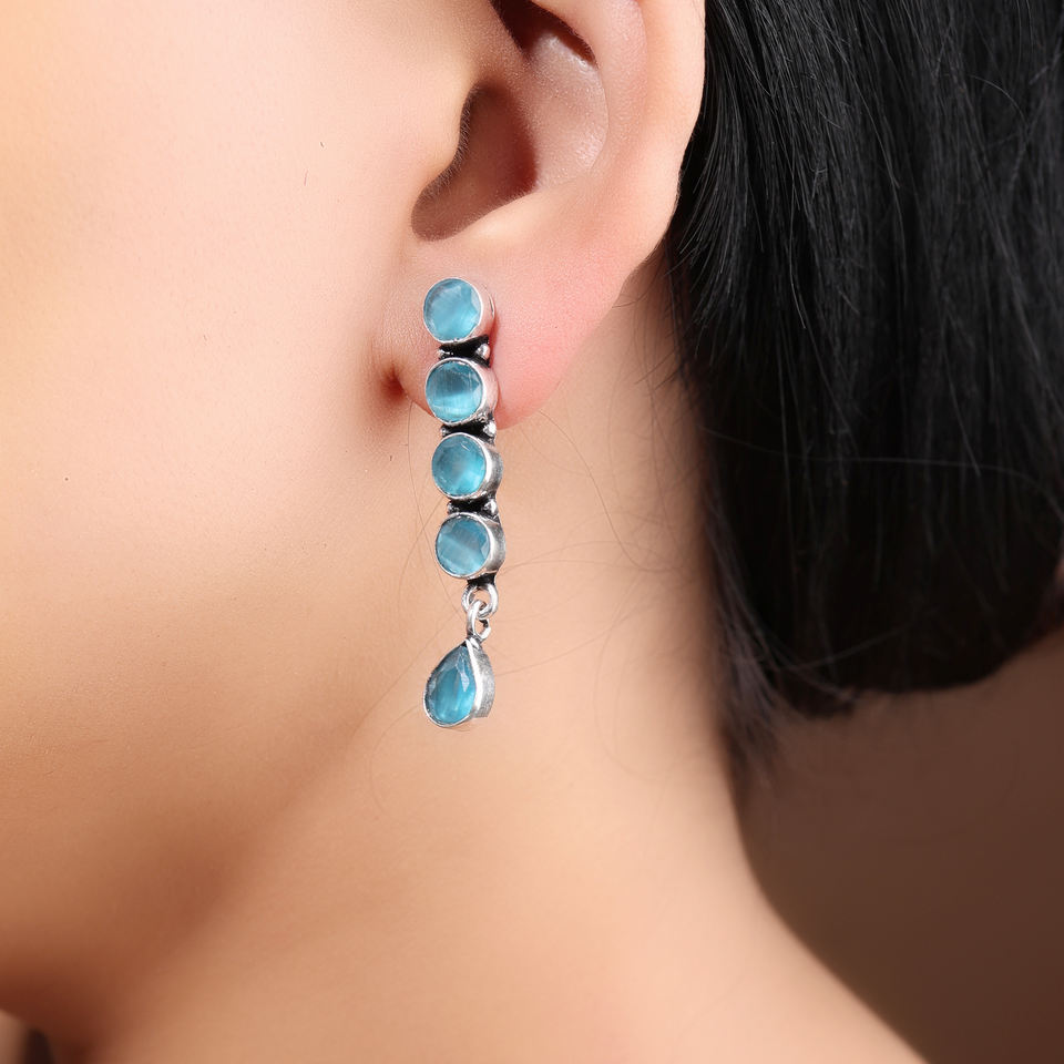 Curved Aqua Stone Drop Earring