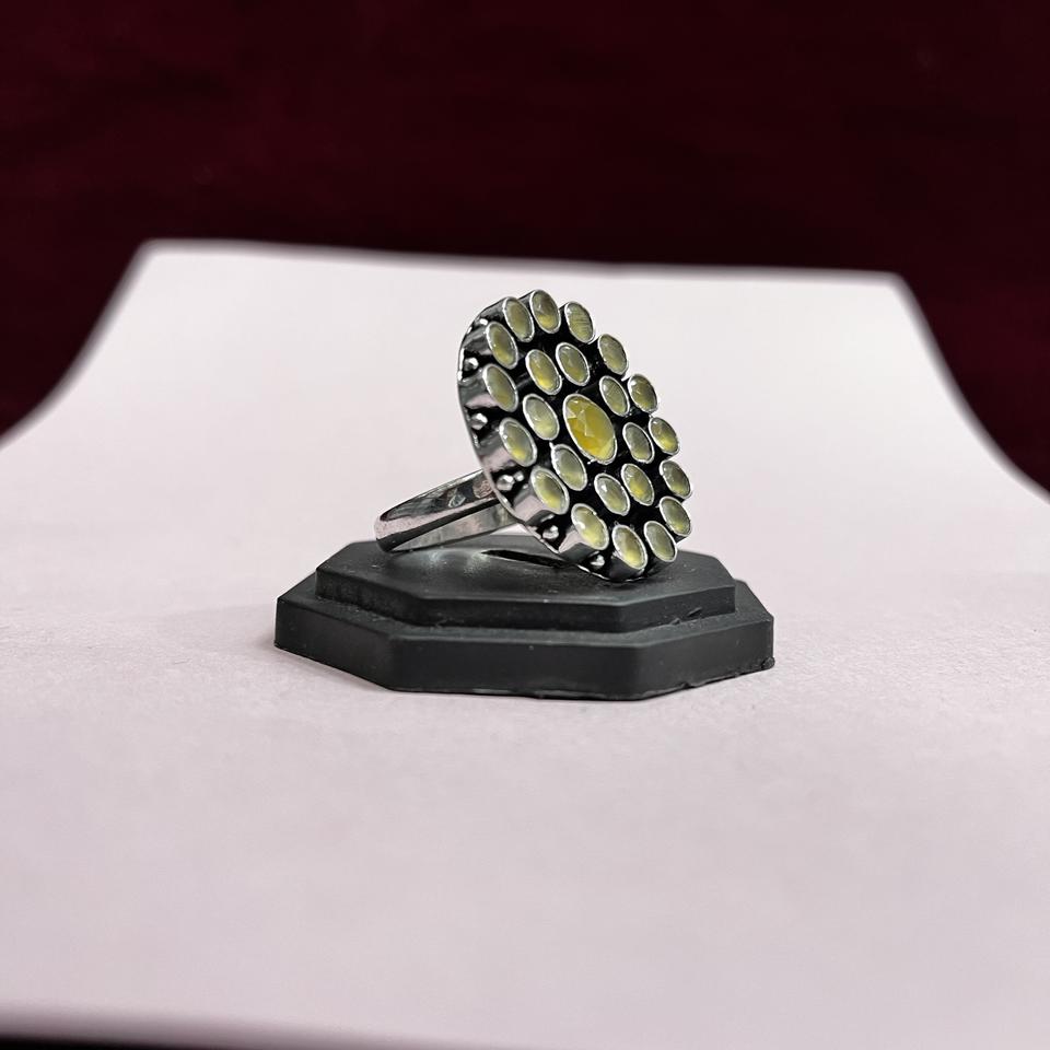 แหวนมโนลิซาสีเหลืองชุบเงินออกซิไดซ์สำหรับผู้หญิง ของขวัญสำหรับเธอ