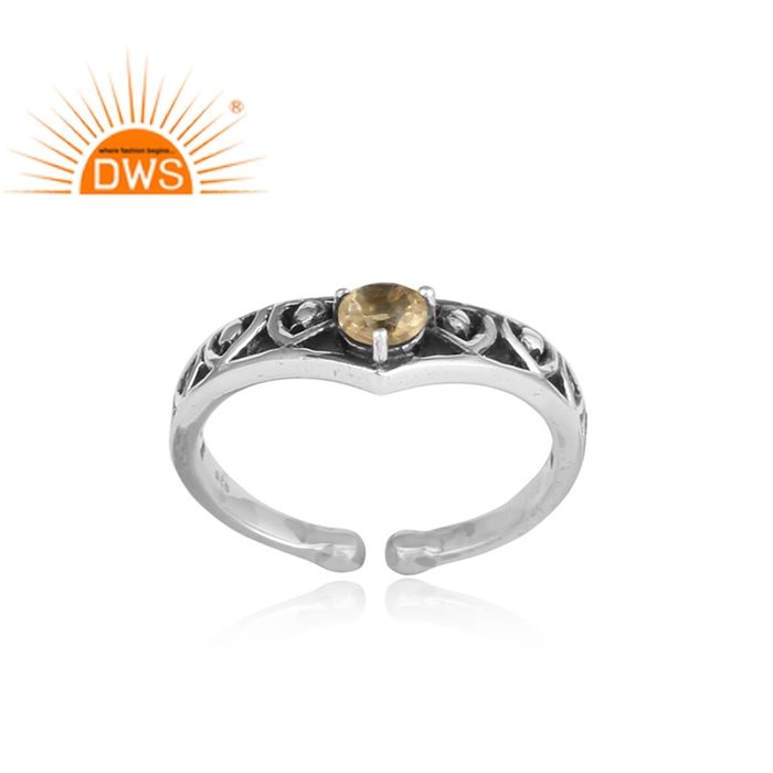 ซิทรินสีเหลืองออกซิไดซ์เครื่องประดับแหวนปรับ925เงินสเตอร์ลิงแหวนซ้อนเครื่องประดับผู้ผลิต