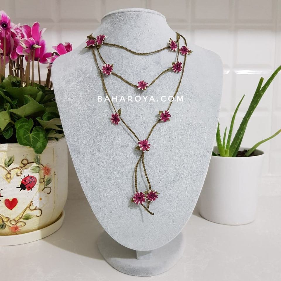 Oyası Çiçekli İğne Kolye Fashion Beaded Necklaces with Floral Detail