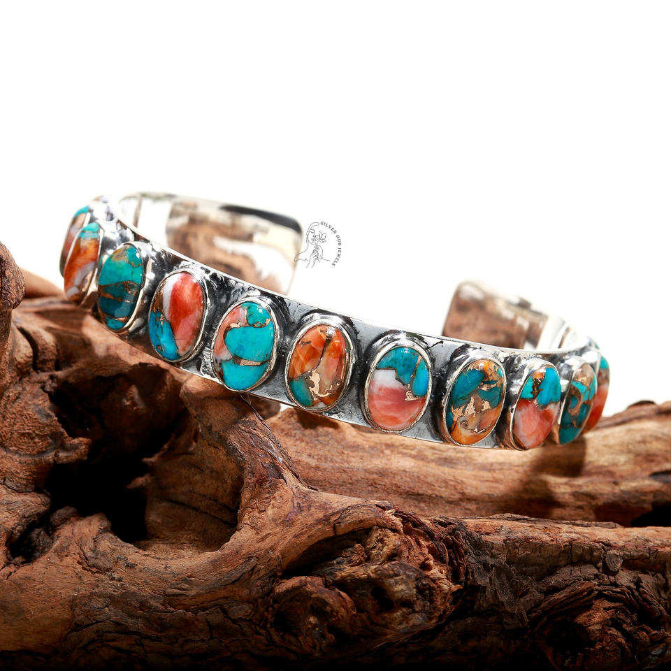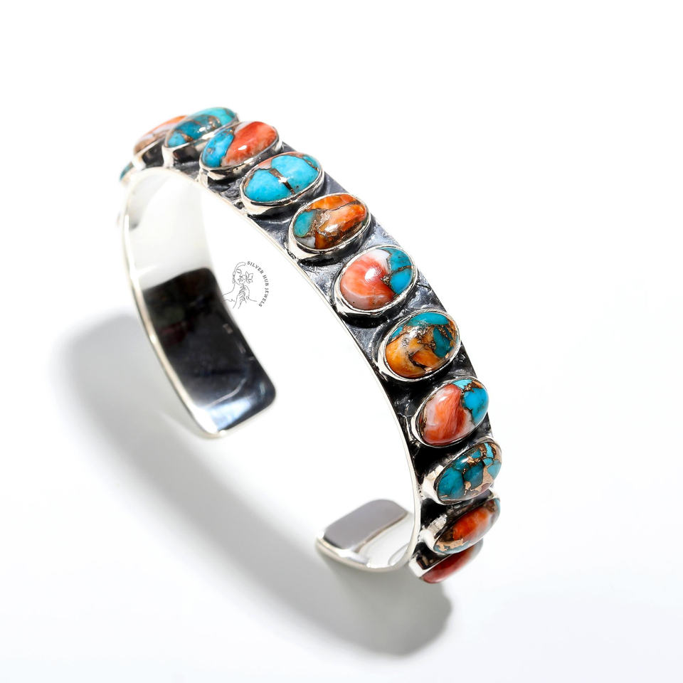 พลอยสีเขียวขุ่นหอยนางรมรูปไข่925สเตอร์ลิงเงินตั้งค่าหนามเตยกำไลเงินเครื่องประดับที่ดีหลายสี