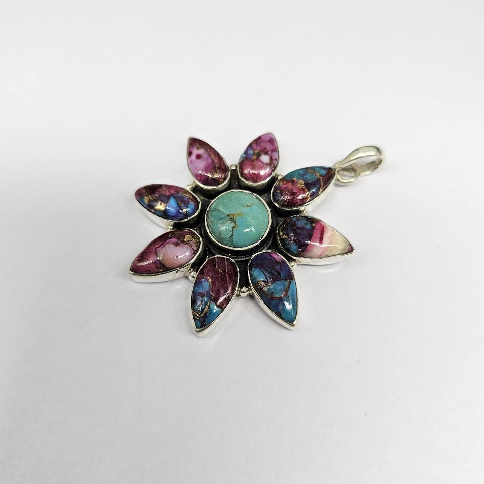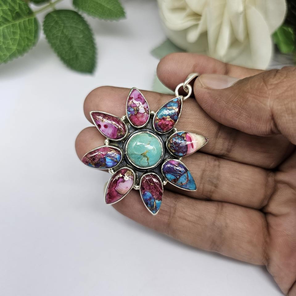 Oyster Turquoise Gemstone Silver Pendant, 925 Sterling Silver, Multicolor Gemstone, Silver Pendant Jewelry