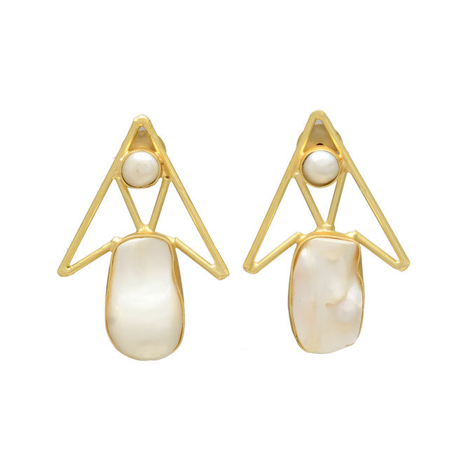 ต่างหูมุกน้ำจืดสีขาวธรรมชาติ ชุบทอง 24K ปราศจากนิกเกิล ทำจากทองเหลือง งานแฮนด์เมดสไตล์วินเทจ รูปทรงคริสเตียน