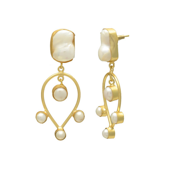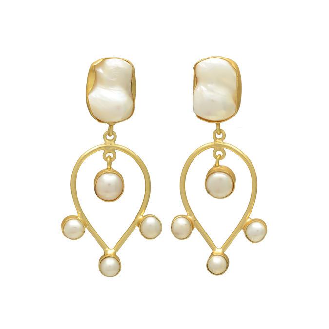 ต่างหูมุกน้ำจืดสีขาวธรรมชาติทรงหอยนางรม ทองเหลืองชุบทอง 24K งานแฮนด์เมด สไตล์คริสเตียน สำหรับผู้หญิง ใส่ในงานแต่งงาน