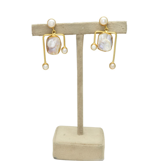 ต่างหูมุกน้ำจืดธรรมชาติสีขาวมุกคริสเตียนวินเทจ ทองเหลืองชุบทอง 24K ปราศจากนิกเกิล ทำด้วยมือ