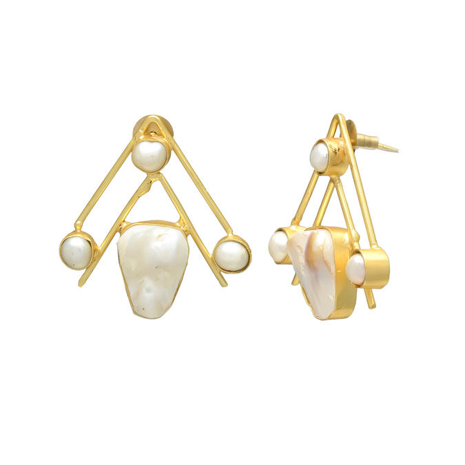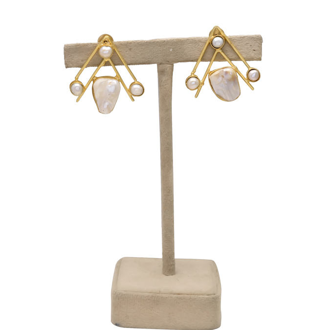 ต่างหูมุกน้ำจืดสีขาวธรรมชาติ ปราศจากนิกเกิล ชุบทอง 24K บนทองเหลือง ประดับคริสเตียนฟลิมมิง เซ็ตติ้งวินเทจ