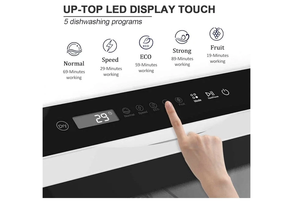 เครื่องล้างจานแบบตั้งโต๊ะพกพาพร้อมถังขนาด 5 ลิตร และ 6 โปรแกรมสำหรับพื้นที่ขนาดเล็ก