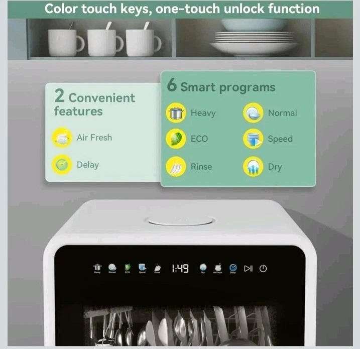 เครื่องล้างจานแบบพกพา เครื่องล้างจานแบบตั้งโต๊ะพร้อมหน้าจอสี 5 โปรแกรมตั้งค่า