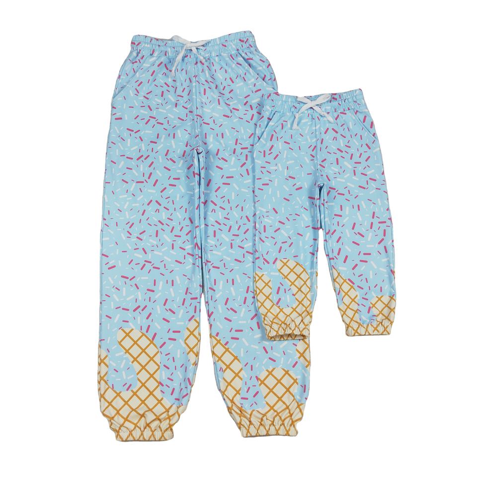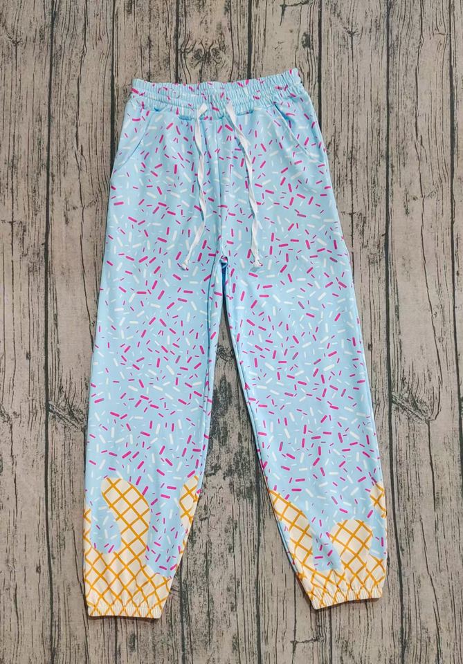 ชุด P0808ขายาวสำหรับผู้ใหญ่ของผู้หญิงชุดพิมพ์ลายกรี๊ดสีฟ้าลายไอศกรีมสำหรับฤดูใบไม้ร่วง