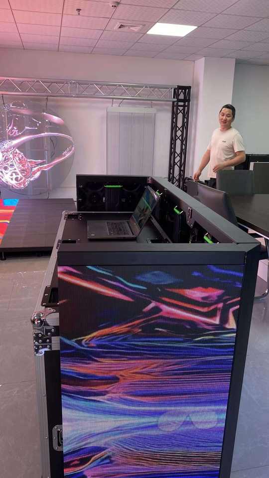 P1.56-P3.91 3-fold LED DJ console, with wheel moving stage screen, suitable for interactive display in music festival bar