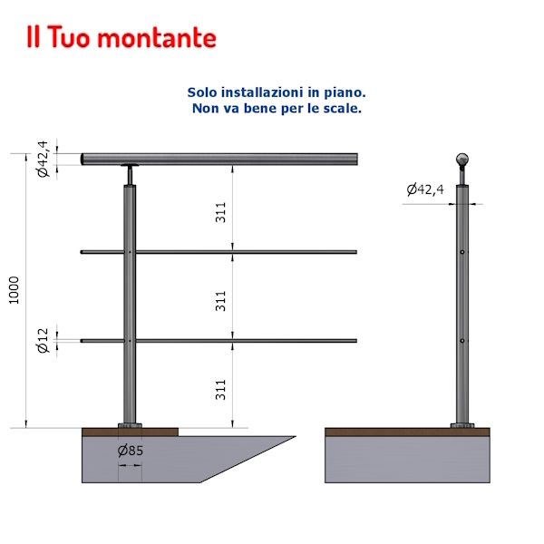 P110105-2สแตนเลสซาตินเสร็จตรงรอบ42.4mm กับ2หลุม12.5mm Aisi 304ความสูงพื้น1.00M