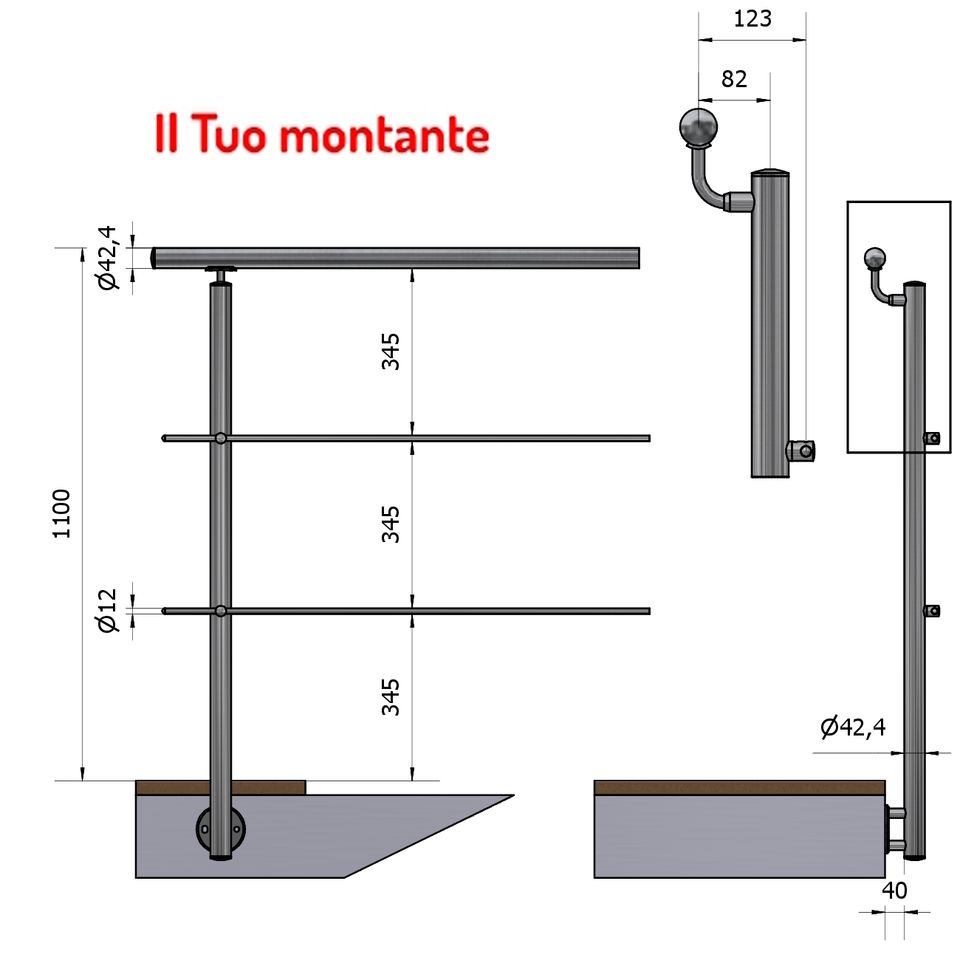 ราวจับ P110132-2XA4-L แบบตั้งตรง42.4มม. ทำจากสเตนเลสสตีล316ขัดเงาขวาง2คาน