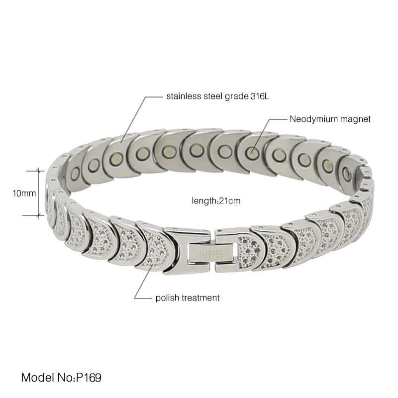 P169แฟชั่นสแตนเลส Watchband Punk หินแม่เหล็กสุขภาพเจอร์เมเนียมสร้อยข้อมือแม่เหล็ก,ไม่มีชุบ