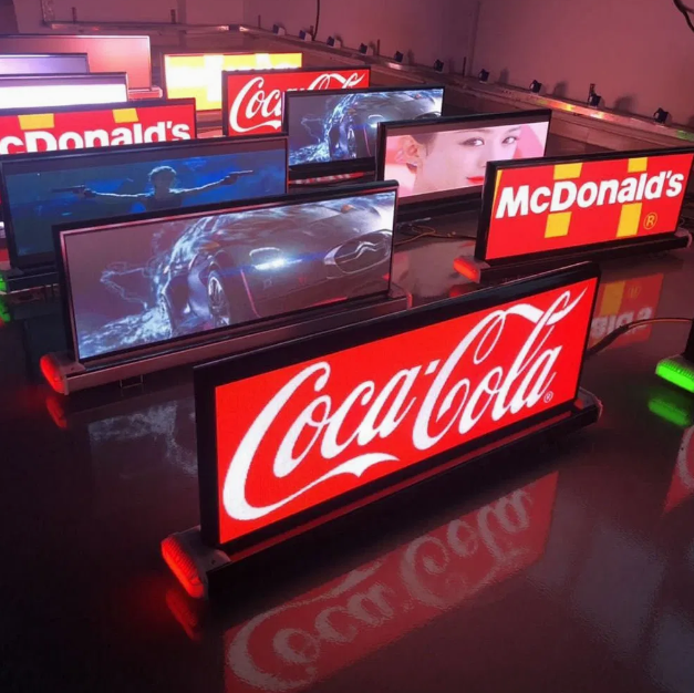 หน้าจอ LED ติดหลังคารถยนต์ P4 ความละเอียดสูง กันน้ำ สำหรับใช้งานกลางแจ้ง แบบสองด้าน สำหรับรถแท็กซี่