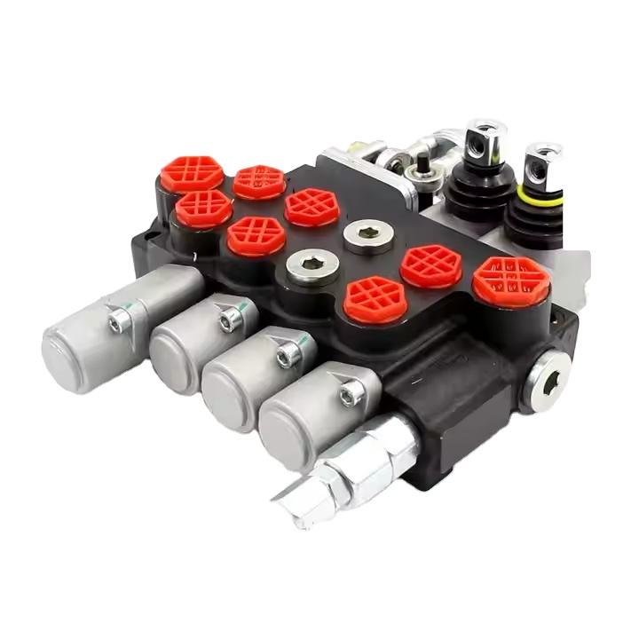 แกนวาล์วทิศทางโมโนบล็อคแบบแมนนวลและจอยสติ๊กแบบ P40 (4แกน4ส่วน4ส่วน) 250บาร์สำหรับชิ้นส่วนเครื่องจักรก่อสร้าง