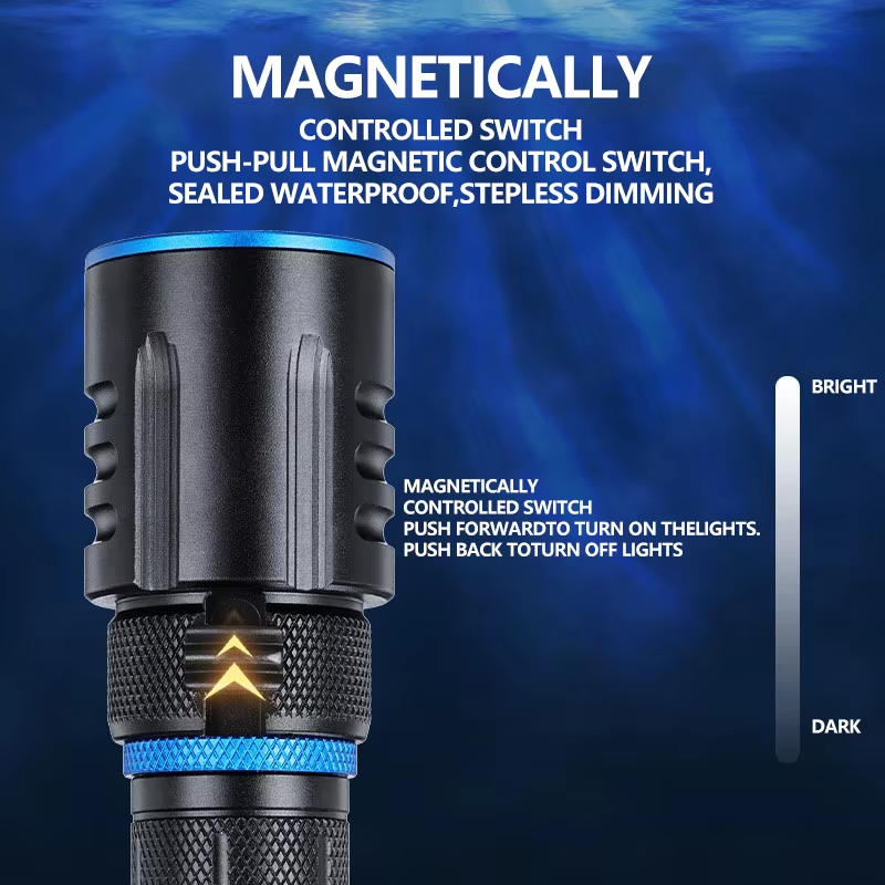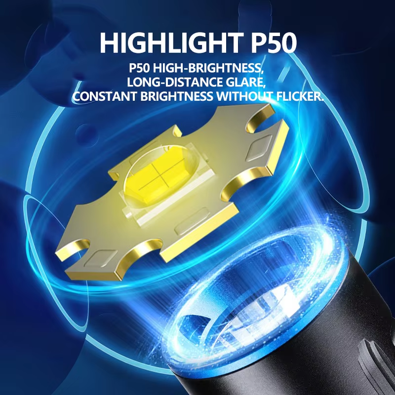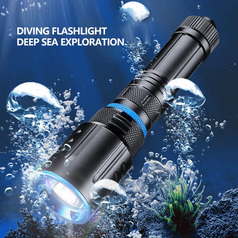 ไฟฉายดำน้ำ P50ที่มีแสงระยะไกลเป็นไฟฉายอเนกประสงค์สำหรับงานชายหาดยามค่ำคืนในทะเลลึก