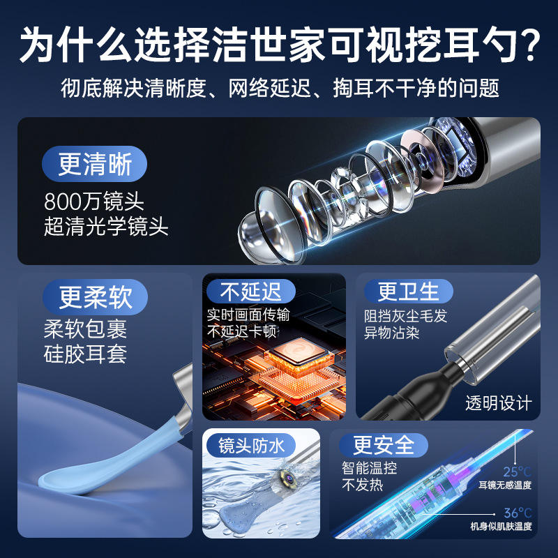 ชุดทำความสะอาดหู P6S 8 ชิ้น สำหรับใช้ในบ้าน เครื่องมือทำความสะอาดหูแบบมองเห็นได้ ความคมชัดสูง