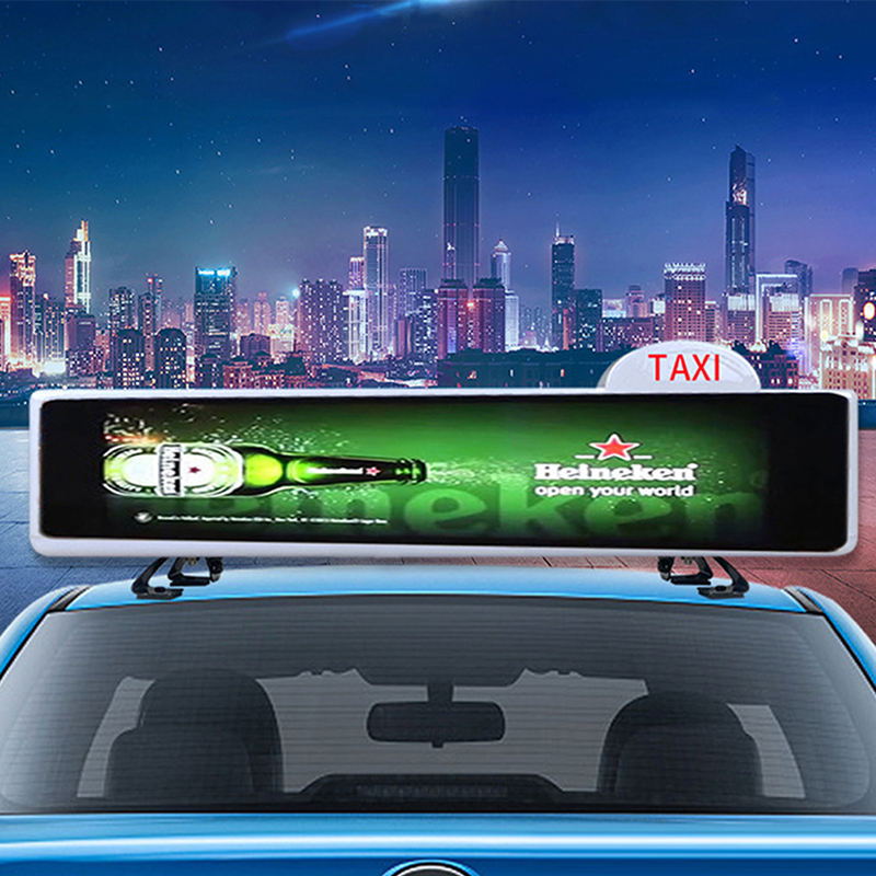 หน้าจอโฆษณาดิจิทัล LED แบบเลื่อนได้ P8 2ด้านสำหรับใช้แสดงบนรถแท็กซี่กลางแจ้งส่งตรงจากโรงงาน