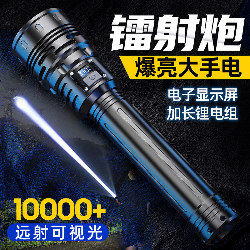 P90 จอแสดงผลดิจิตอลแบบชาร์จไฟได้ไฟฉายโฟกัสแบบยืดหดได้ 10000 มิลลิแอมป์ LED แสงสีขาวอลูมิเนียมอัลลอยด์กำลังสูง