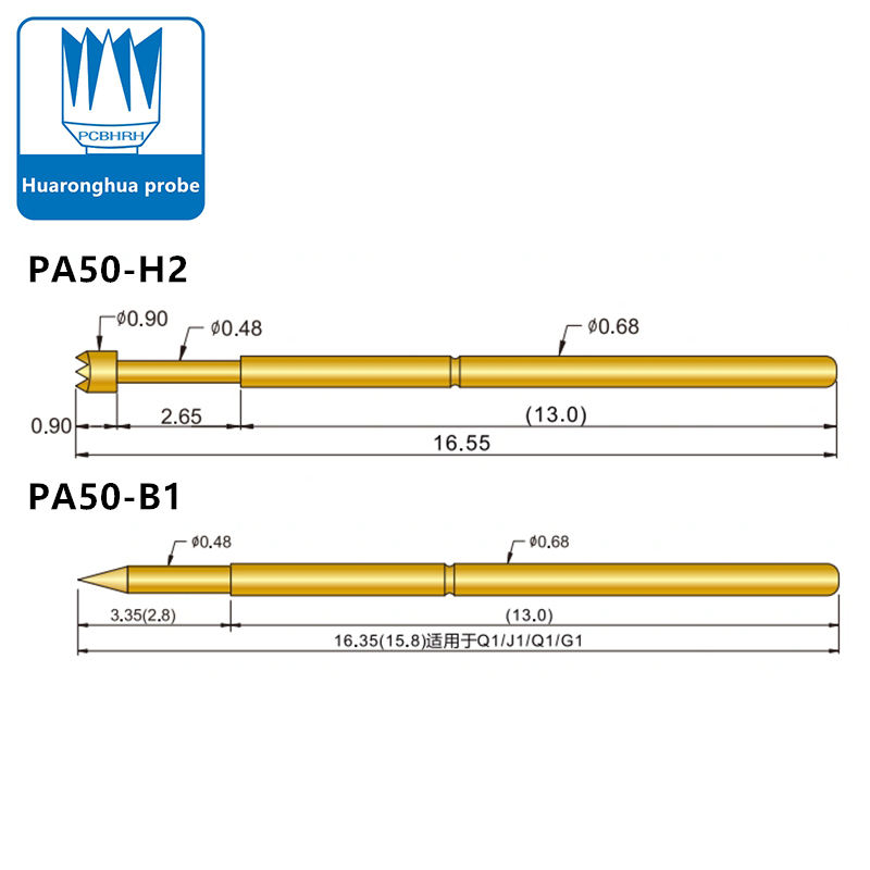 เข็มทดสอบ PA50 ซีรีส์ A/B/J/D/H/F/Q1/Q2 ขนาด 0.68 มม. ปลอกเข็มด้านบน การออกแบบ/การผลิต PCB การทดสอบวงจรรวม Huaronghua