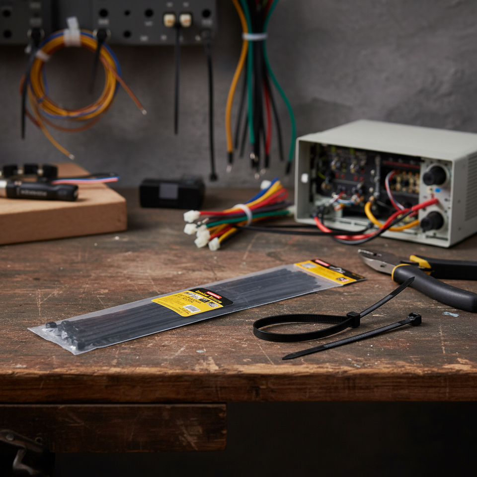 สายรัดเคเบิล Tooltrex ขนาด 7.6x400 มม. สีดำ วัสดุ PA66 จำนวน 15 ชิ้น สำหรับการรัดสายไฟ