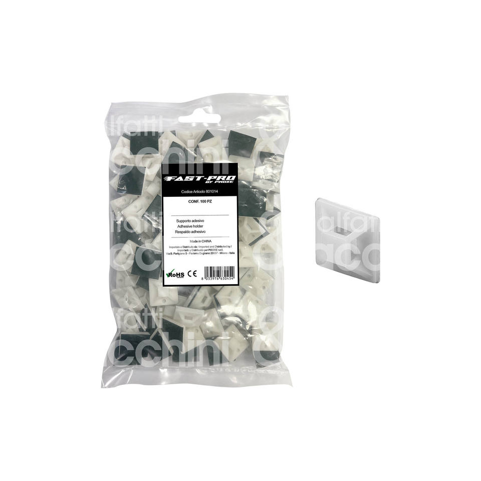 PACK OF 100 ADHESIVE SUPPORTS FOR CABLE TIES Size: 20 x 20 mm White colour