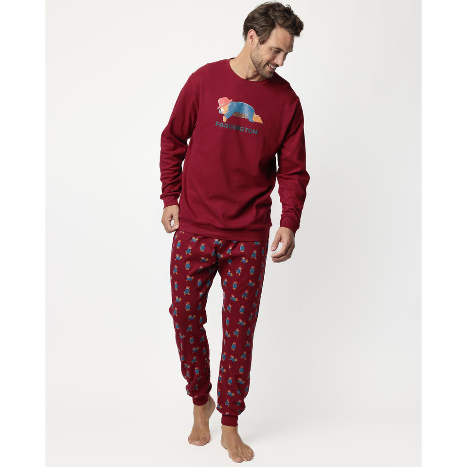 ชุดนอนผ้าไหมและผ้าฝ้ายลำลองสำหรับผู้ชาย PADDINGTON ชุดนอนแขนสั้นสวมใส่สบายพร้อมผ้าถักสีโกเมน