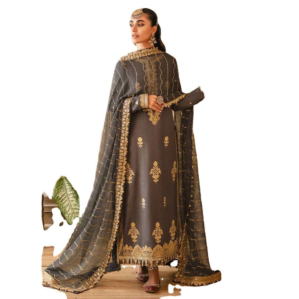 ชุดเดรสเด็กผู้หญิงคุณภาพสูงจาก WS INTERNATIONAL สีเทาทอง ผ้าไหม พร้อมผ้าคลุมไหล่ผ้าออร์แกนซ่า ชุดสلوار คามีซ กาลาเร