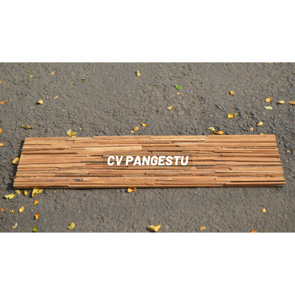 แผ่นผนังไม้ 3 มิติ ลายเรขาคณิต ยี่ห้อ PANGESTU รุ่น Modern แบบไม่ทอ ดูดซับเสียง กันเสียง ไม้สักอินโดนีเซีย สำหรับตกแต่งบ้านพักตากอากาศและอาคารพาณิชย์
