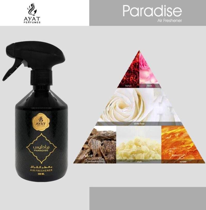 น้ำหอม Paradise ขนาด500มล. สำหรับห้องน้ำหอมและสเปรย์น้ำหอมปรับอากาศภายในรถบ้าน
