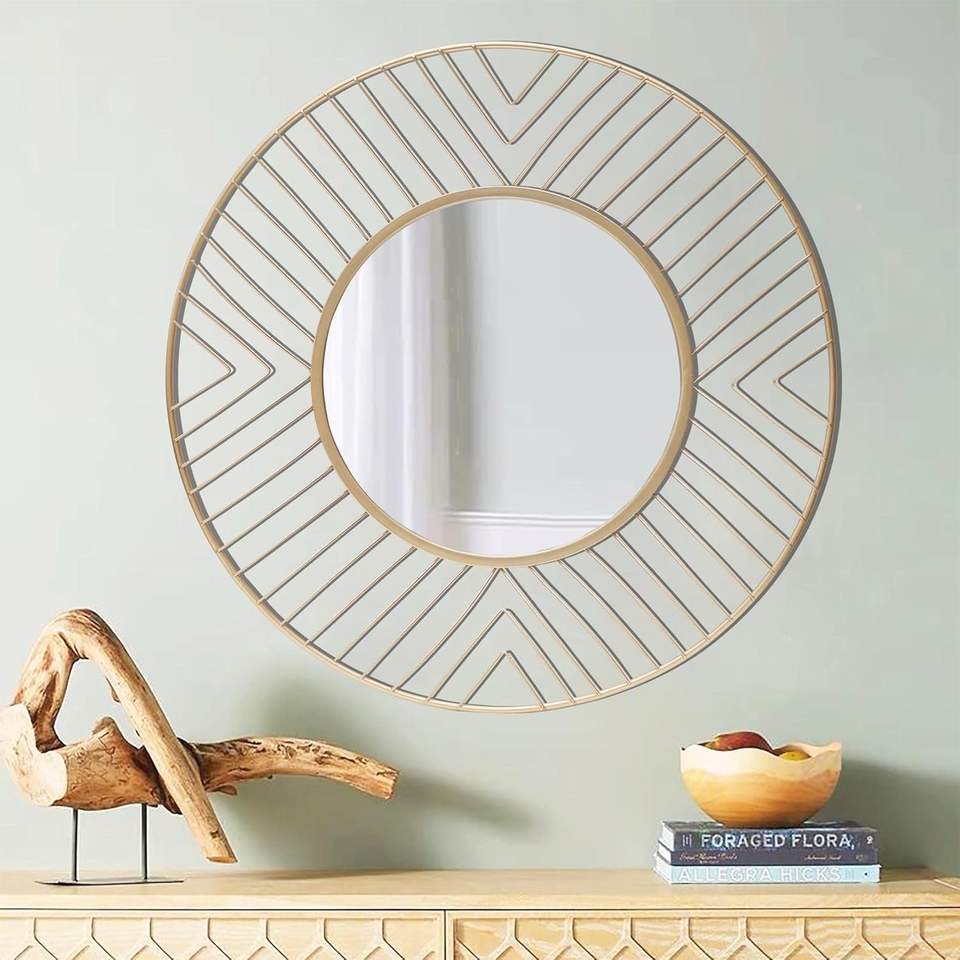 Parisloft 28 "กระจกโลหะติดผนังทรงกลมสีทองร่วมสมัยตกแต่งด้วยกระจกผนังลวดที่ทันสมัย