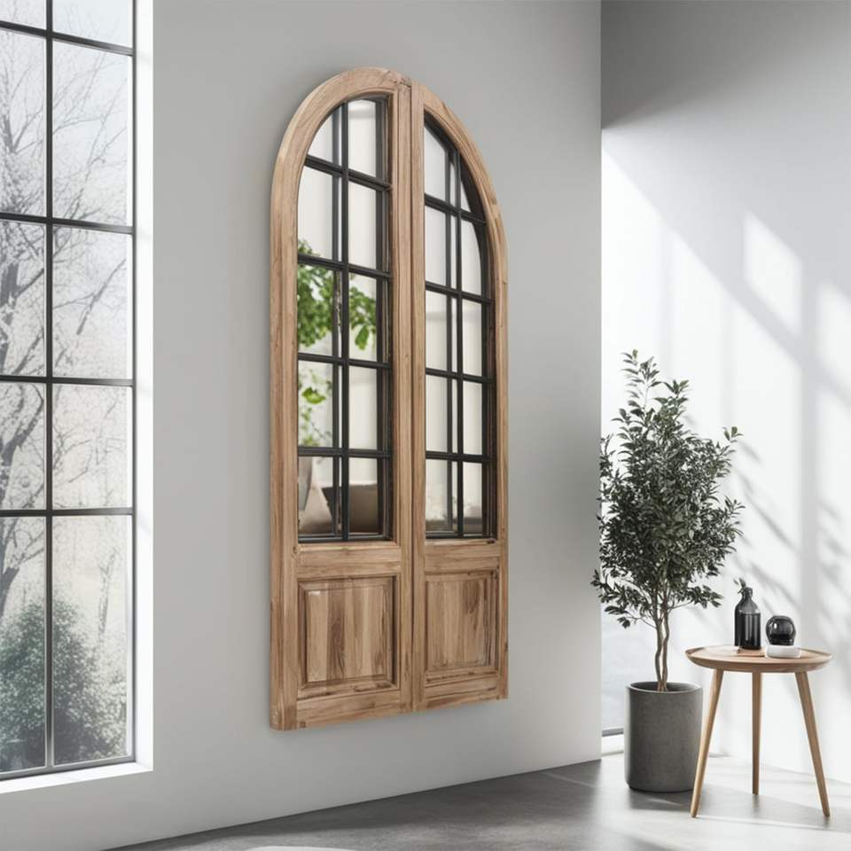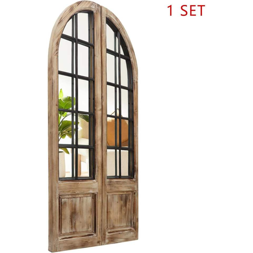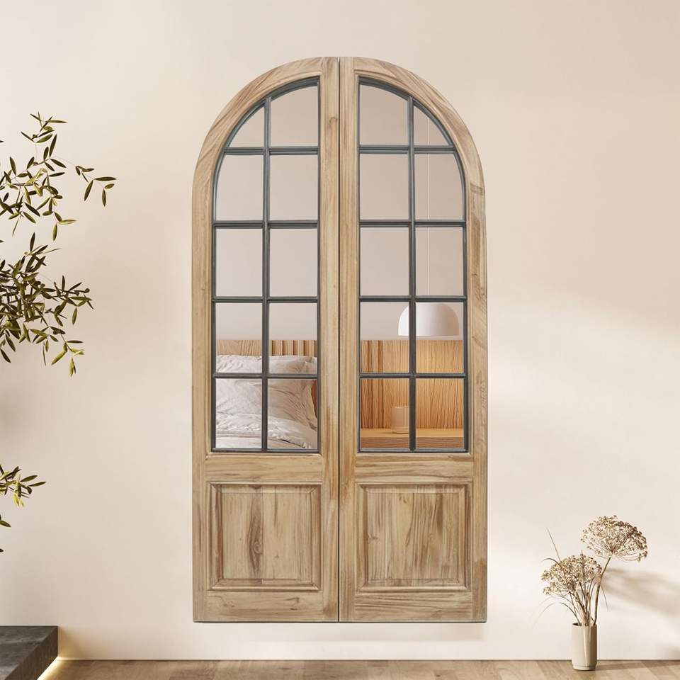 กระจกติดผนังทรงโค้งสไตล์ฟาร์มเฮาส์ PARISLOFT กรอบไม้สีน้ำตาล ขนาด 47.2 x 24 นิ้ว สำหรับตกแต่งห้องนั่งเล่นและทางเข้าบ้าน