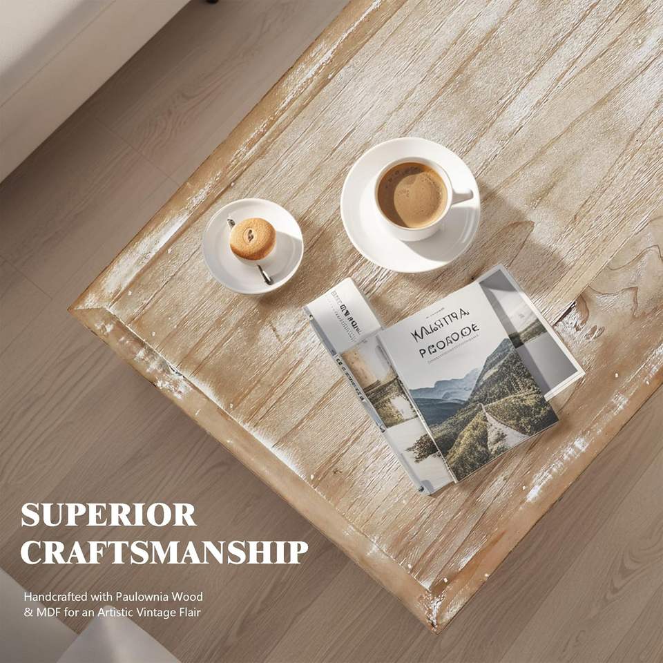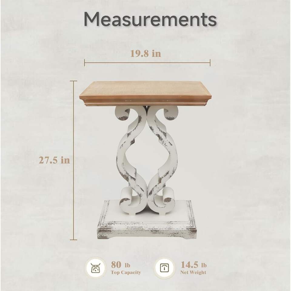 โต๊ะคอนโซลไม้สไตล์เรโทร PARISLOFT ขนาด 19.8 กว้าง x 27.5 สูง นิ้ว พร้อมชั้นวางของ ฐานแบบแท่น สีน้ำตาลโบราณ-ขาว เฟอร์นิเจอร์ห้องนั่งเล่น